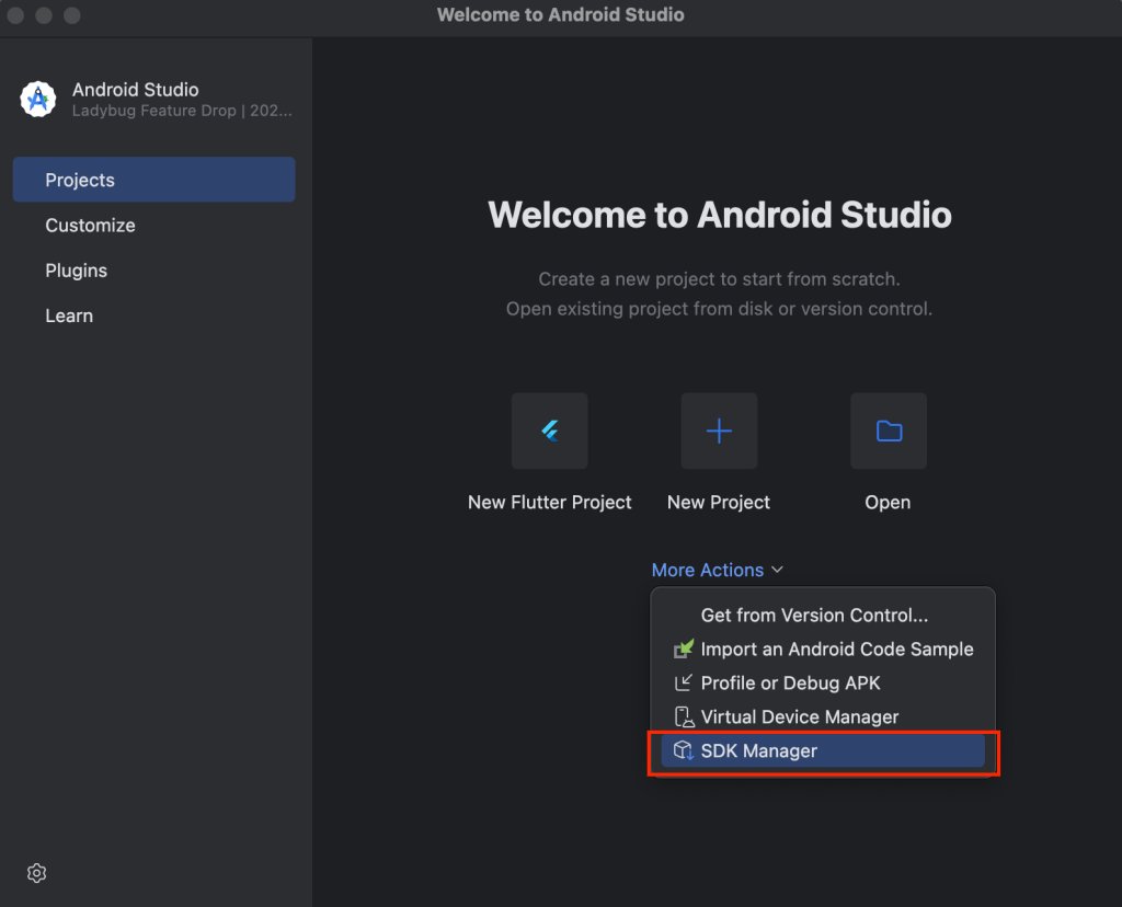 Android Studio を起動し、「SDK Manager」を開きます。